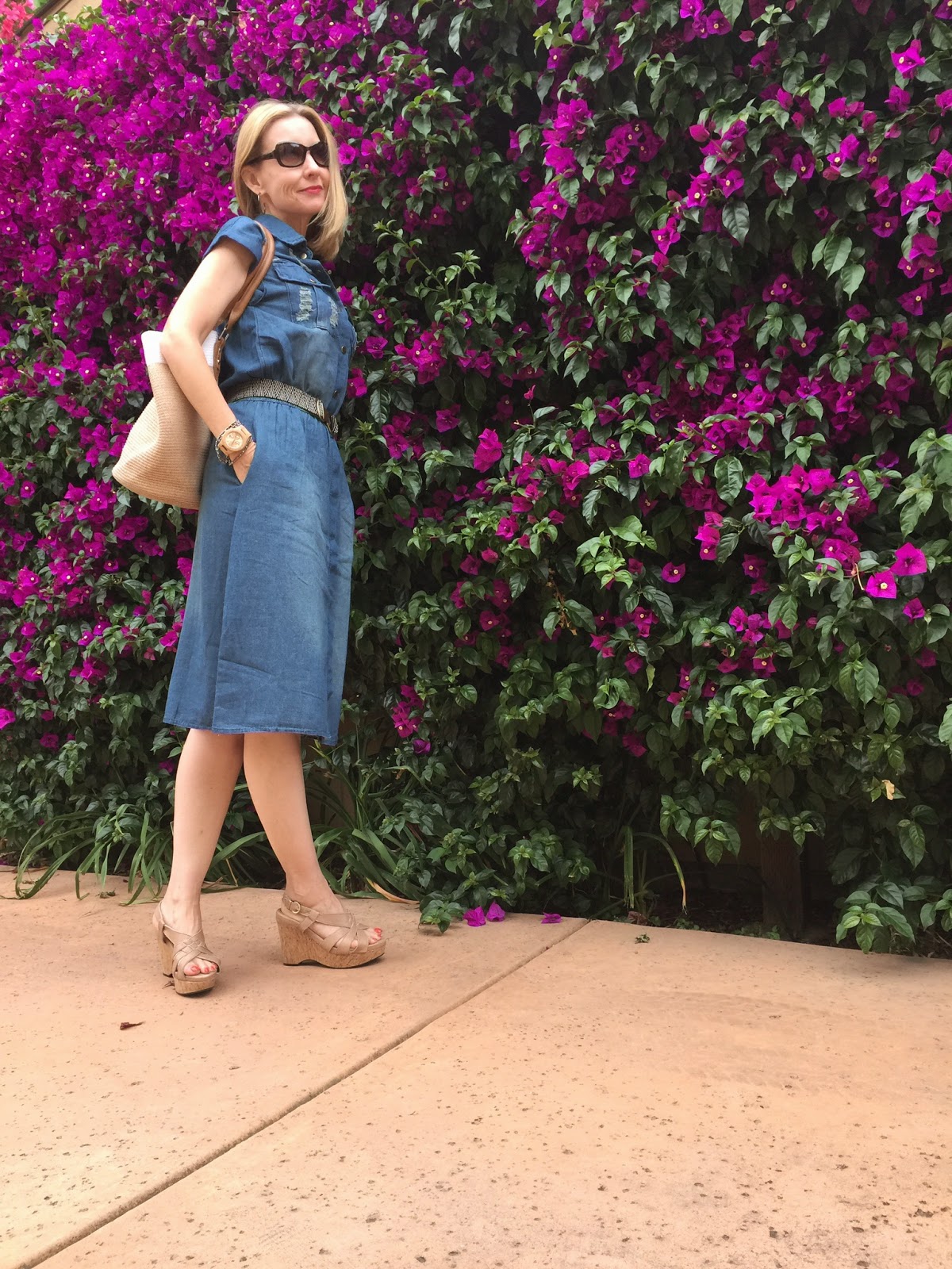 Love your denim dress and your wedges. Great look