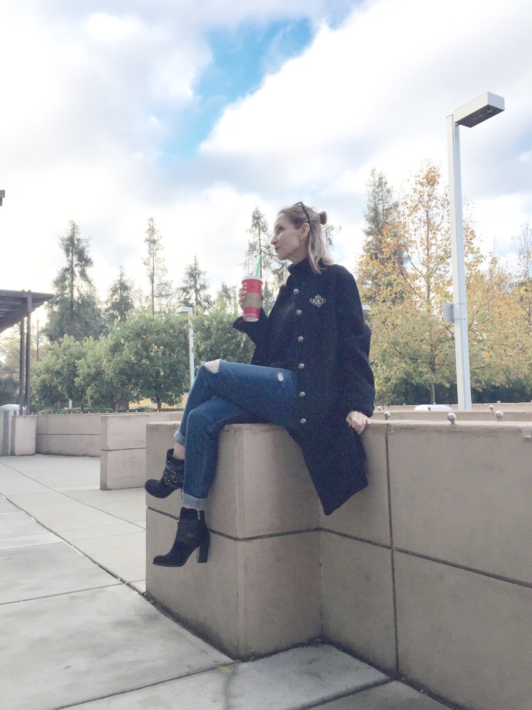 That brooch is so pretty on that jacket! Love those booties with it, too!