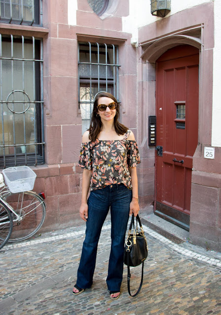 Kristin of Countdown to Friday is rocking flares and fall florals!