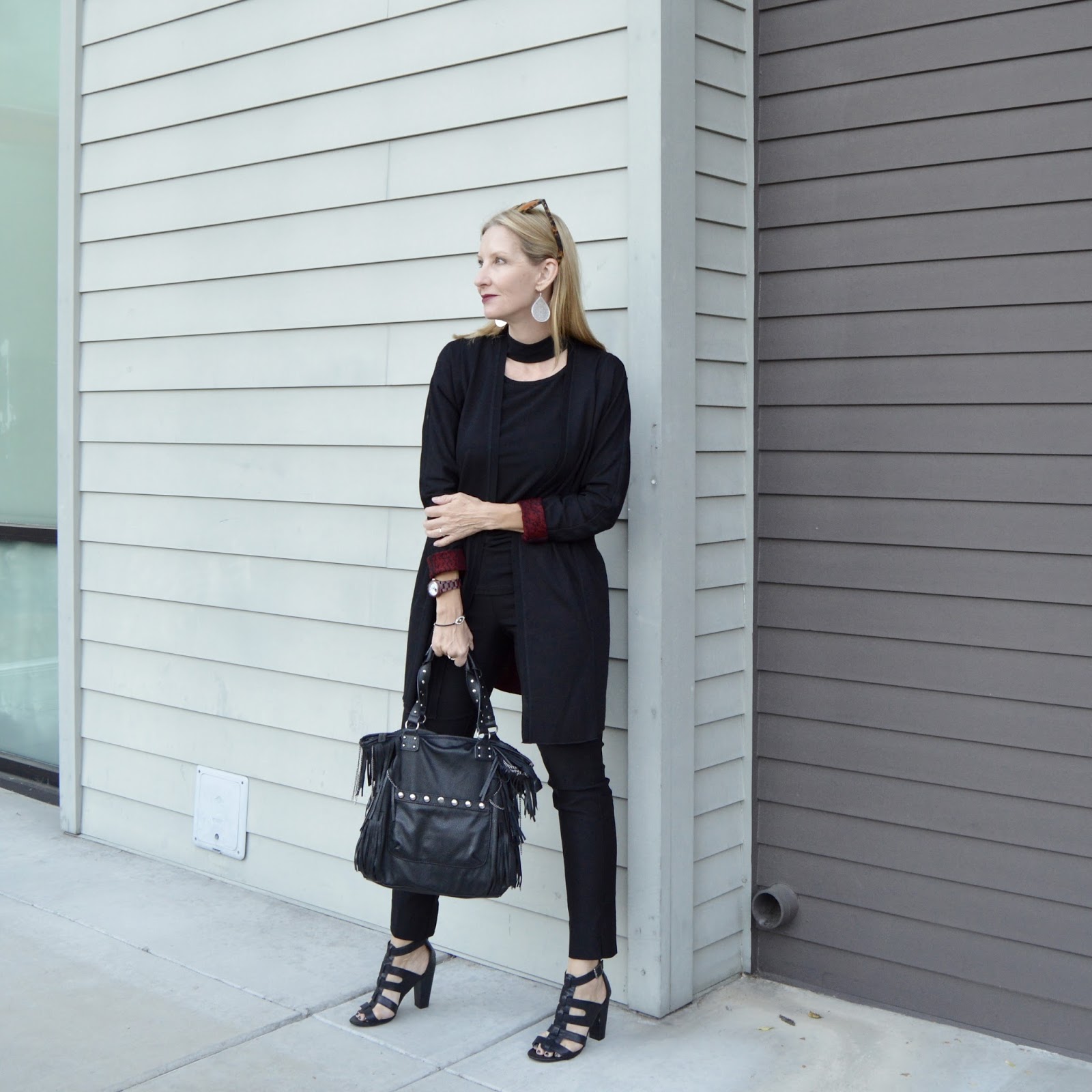 I have always loved all black looks. And your cardigan certainly is the perfect piece for the autumn. Great that it is reversible!