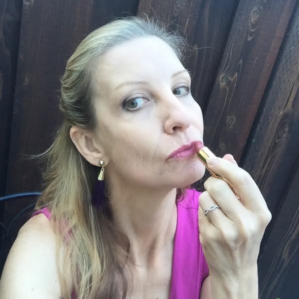 And here I’m wearing the peony pink “Shopping in Paris” …. you have to love a cool name! Plus the lipsticks come in a luxurious gold case. Love the glamour!