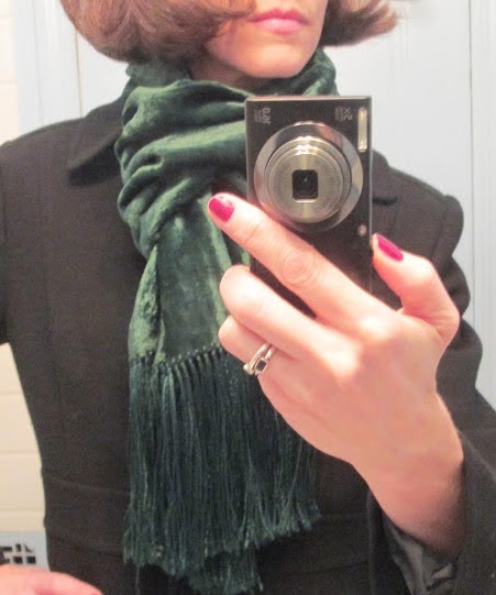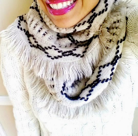 The soft pretty scarf was a gift from my dear friend, Glenda (a little birdie told me she got it at Macy’s). The chunky sweater was a Zara after Xmas sale purchase. Also wearing – Old Navy jeans, Readers.com glasses, and an Oryany handbag.