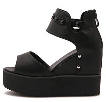 Black with Rivet Back Zipper Wedge Sandals