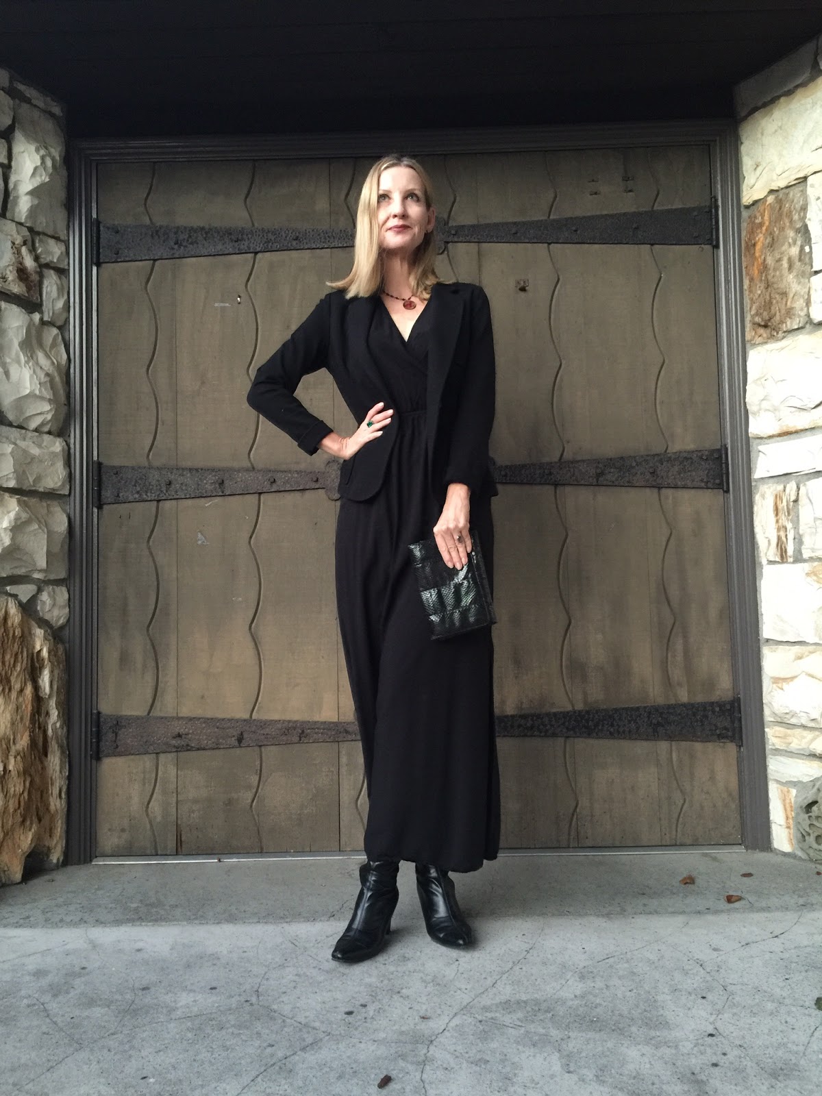 our goth look is so sophisticated and glamorous. I love the maxi dress and clutch.