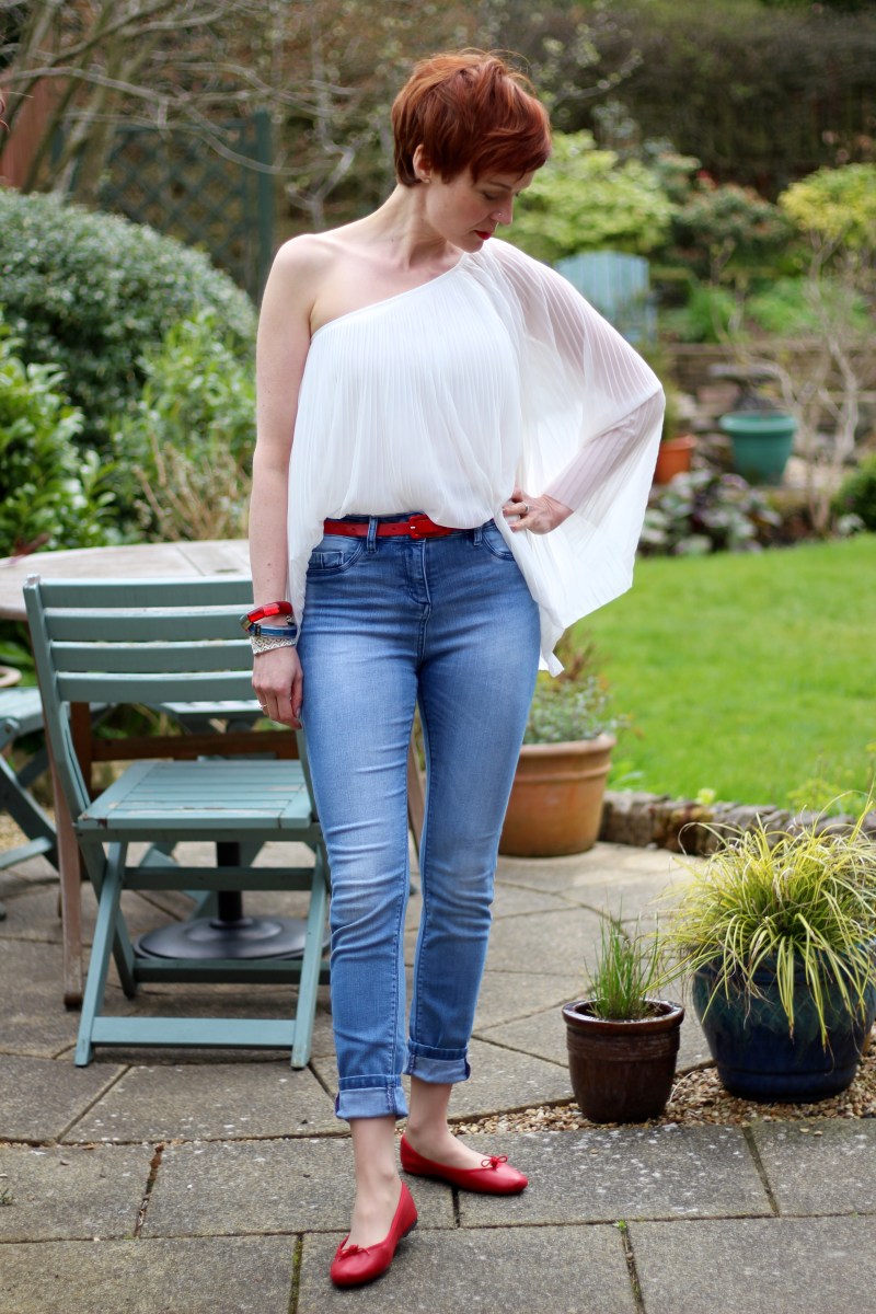 Pleated Top: Topshop // Jeans: Falmer // Belt: Topshop // Shoes: French Sole // Bangles: Old