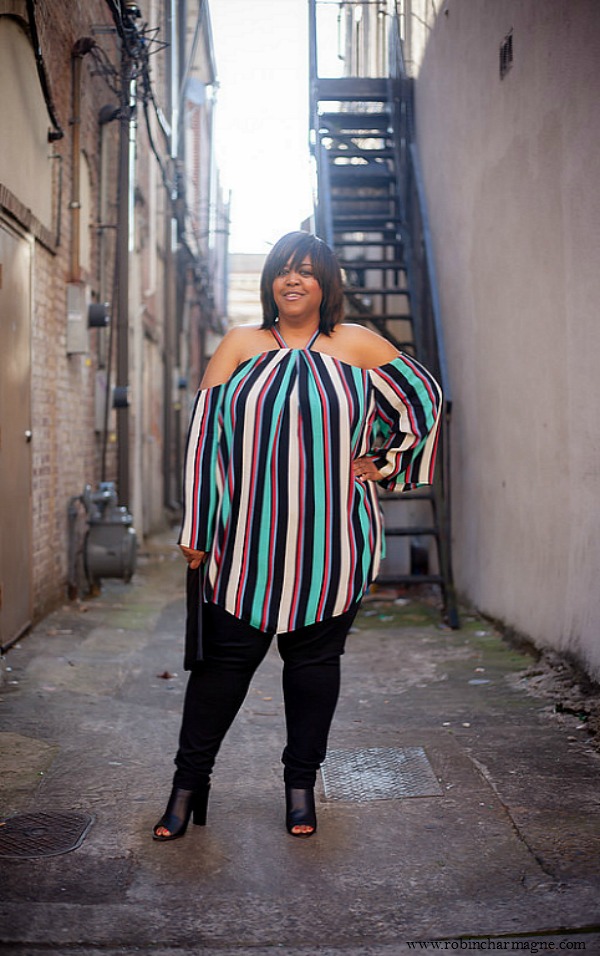Robin Charmagne … this cold shoulder striped blouse is so on point!